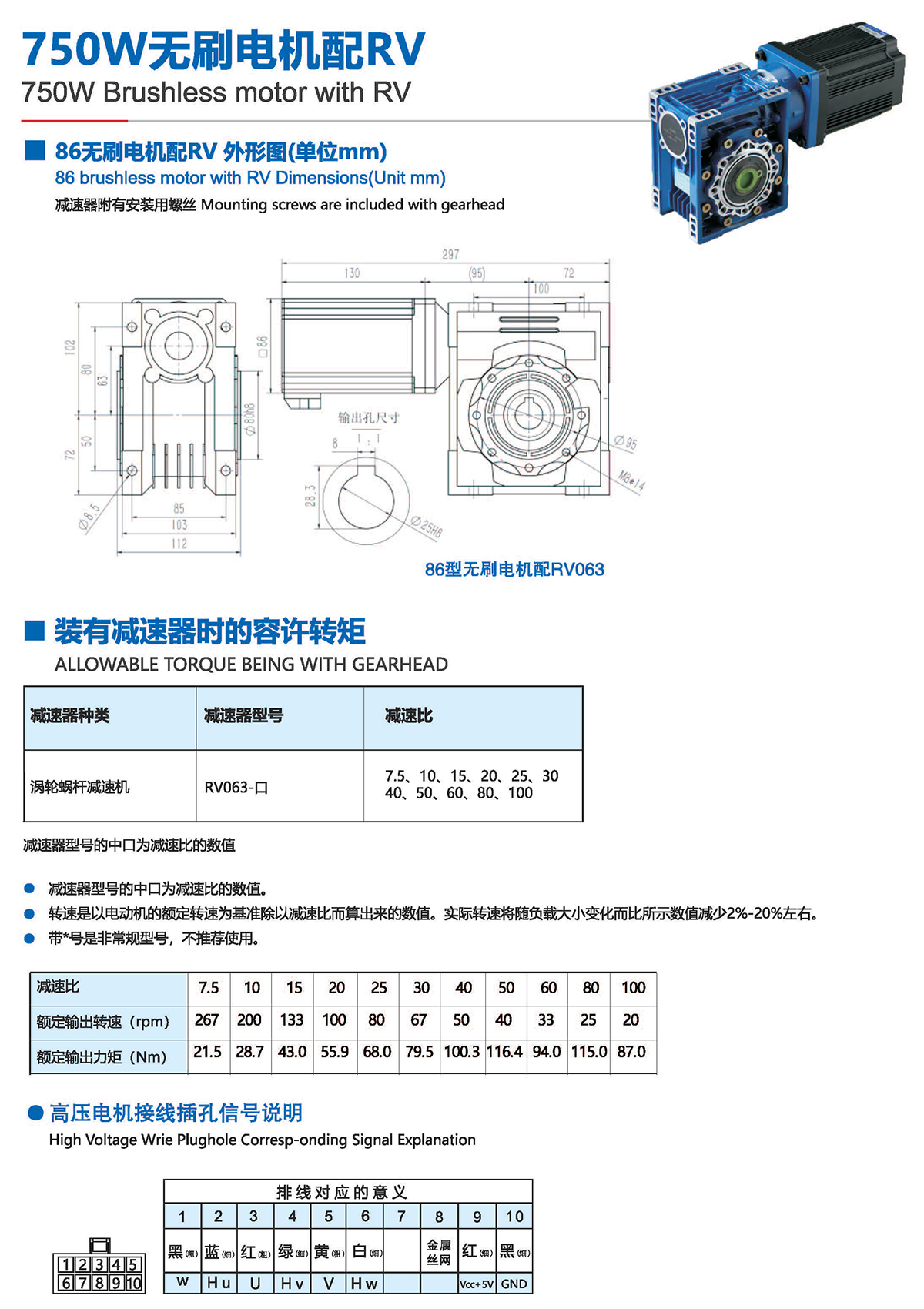 无刷电机配RV