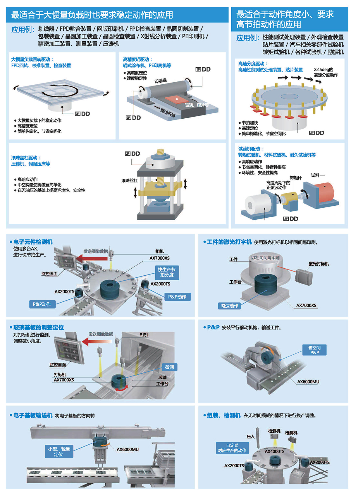直径从60mm-490mm、连续扭矩从1-1200N.m有十几个大小可选规格,绝对精度可达±10arc-sec,重复定位精度可达0.5arc-sec。具有高精度、高刚性、低轴向径向跳动等优点,被广泛应用于半导体生产设备、光媒体、光学对位、定位检测、精密数控机床、汽车装配检测、液晶制造设备、屏幕贴合设备、锂电池制造设备、高端丝印设备及医疗器械等微精密高端制造业领域.