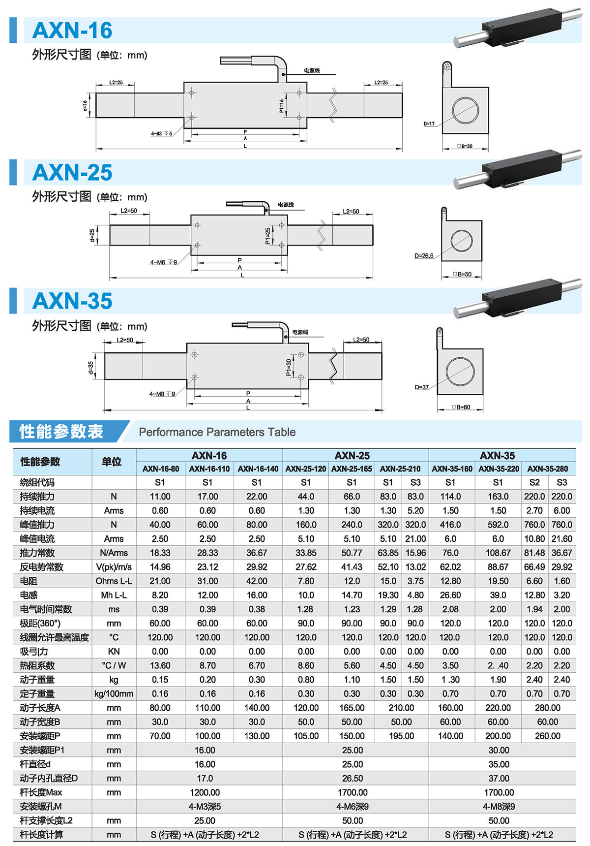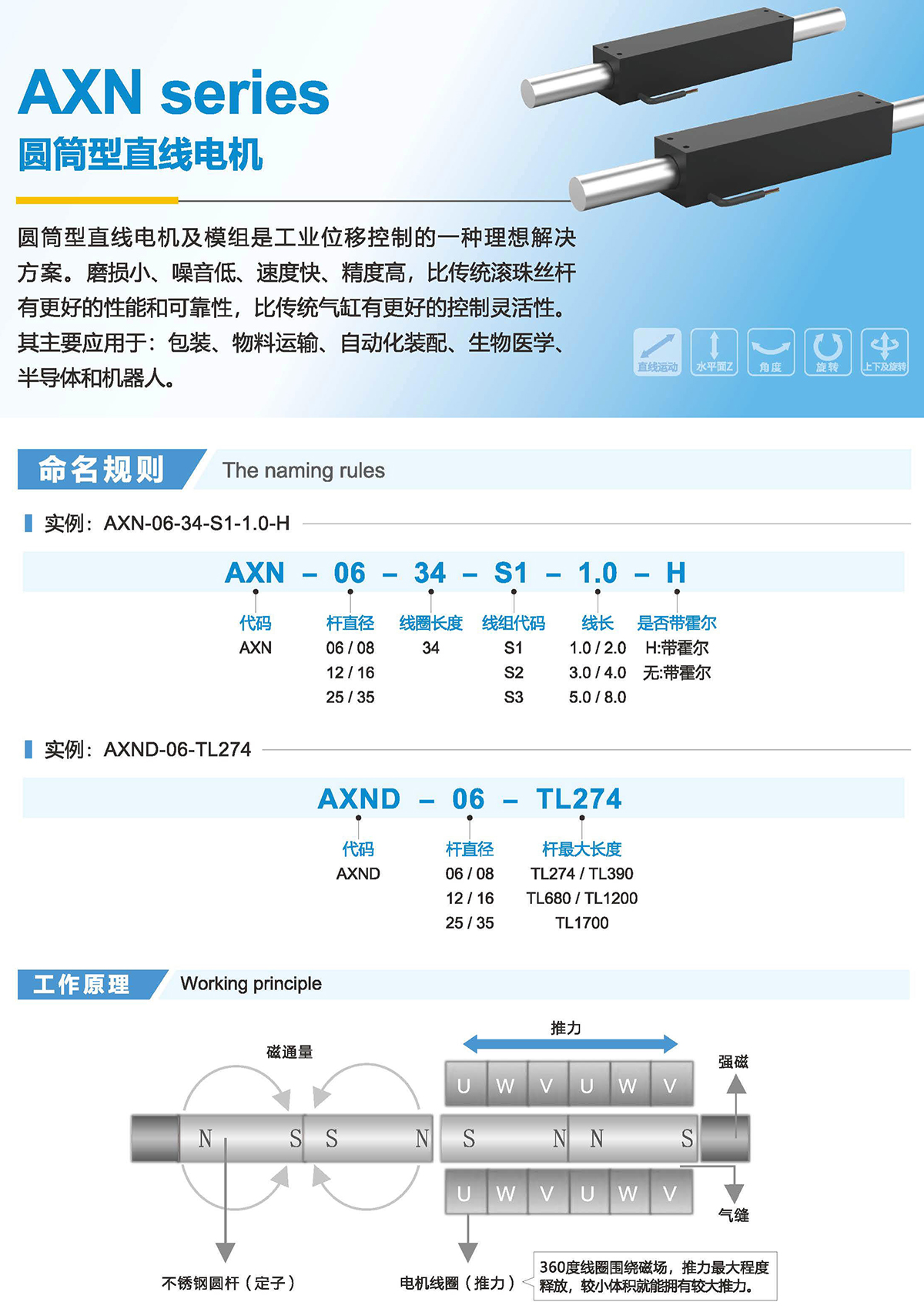 AXN系列圆筒型直线电机(P)